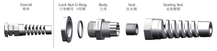防水圈:丁腈橡胶 (可选EPDM, 硅橡胶,TPV等)