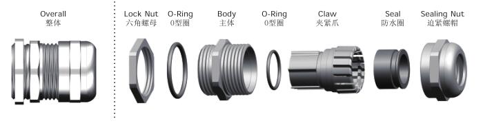 防水圈:丁腈橡胶 (可选EPDM, 硅橡胶,TPV等)