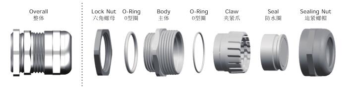防水圈:丁腈橡胶 (可选EPDM, 硅橡胶,TPV等)