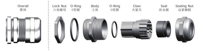防水圈:丁腈橡胶 (可选EPDM, 硅橡胶,TPV等)
